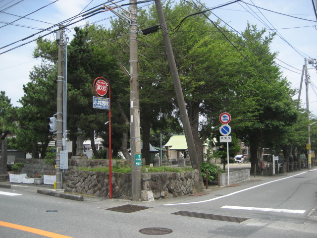 やや低い石がきがあり、鳥居の奥に石だたみの参道がお堂まで