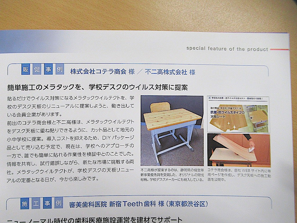 簡単施工のメラタックを、学校デスクのウィルス対策に提案