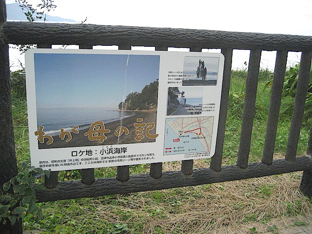 小浜海岸には、ここが映画のロケ地である小さな看板が