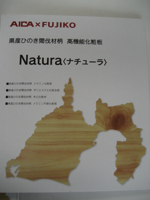 不二高が企画・開発した「ナチューラ(桧節有り間伐材柄)」の