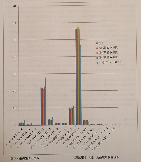 試食した熟成牛の脂肪酸成分試験のなかで、