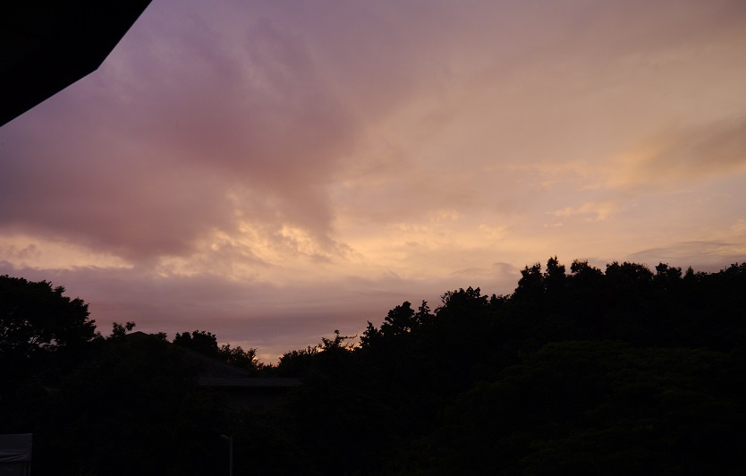 夕暮れ時になり、室内の灯りが