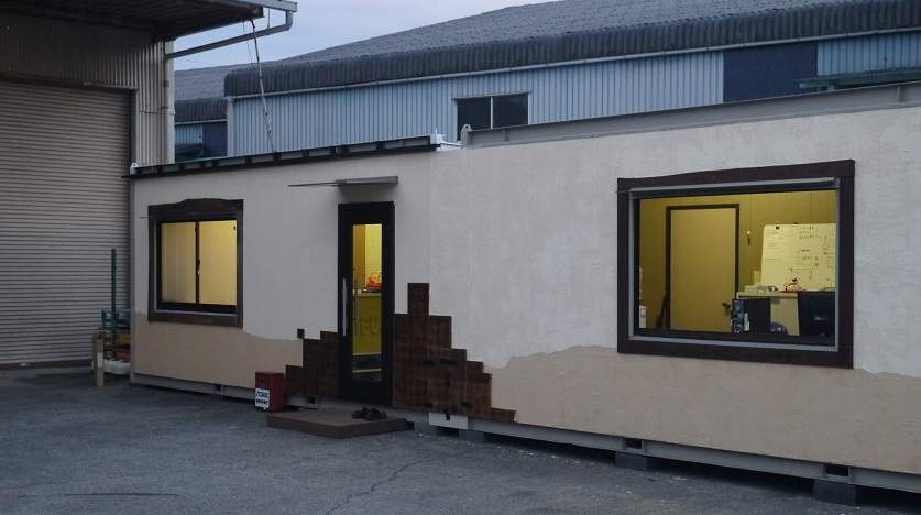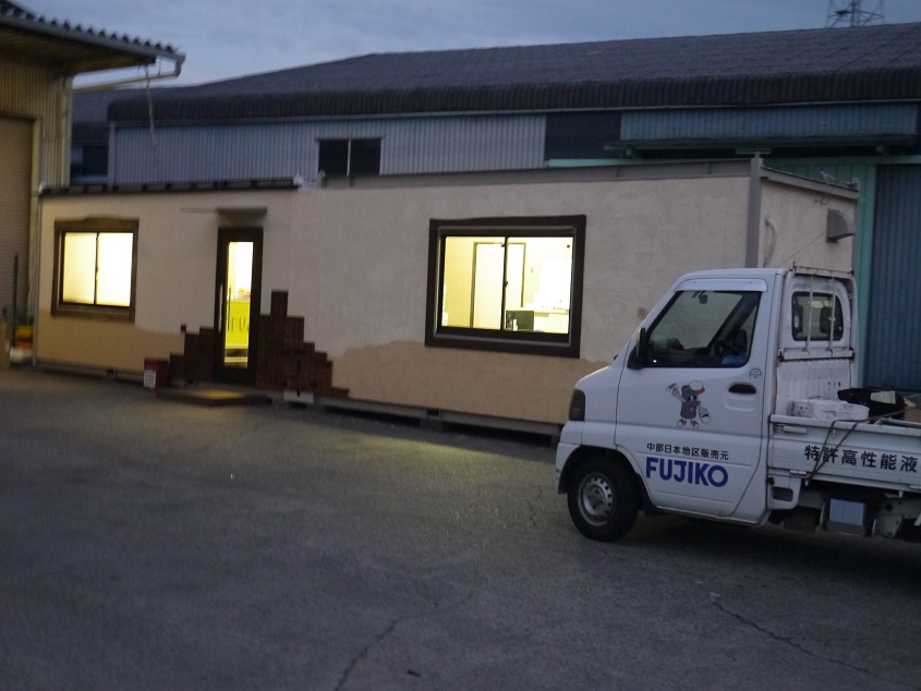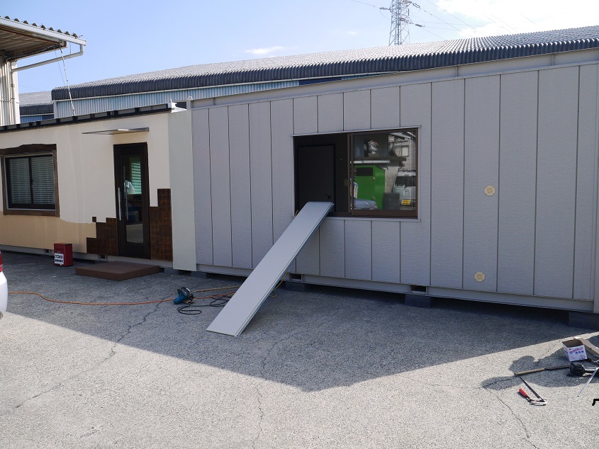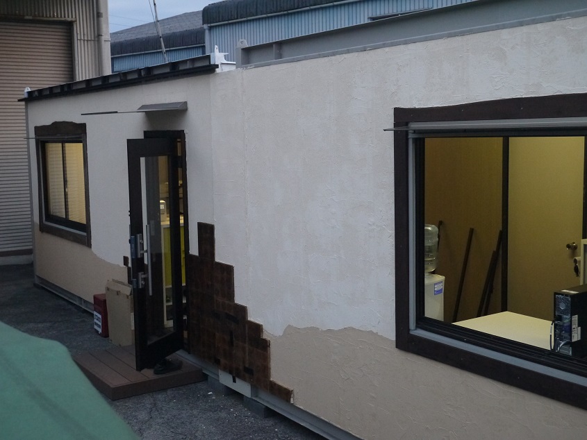 静岡営業所の外装工事のふたてに分かれて