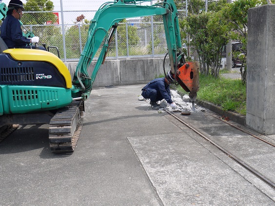 いよいよ、鉄製のレールの撤去です。